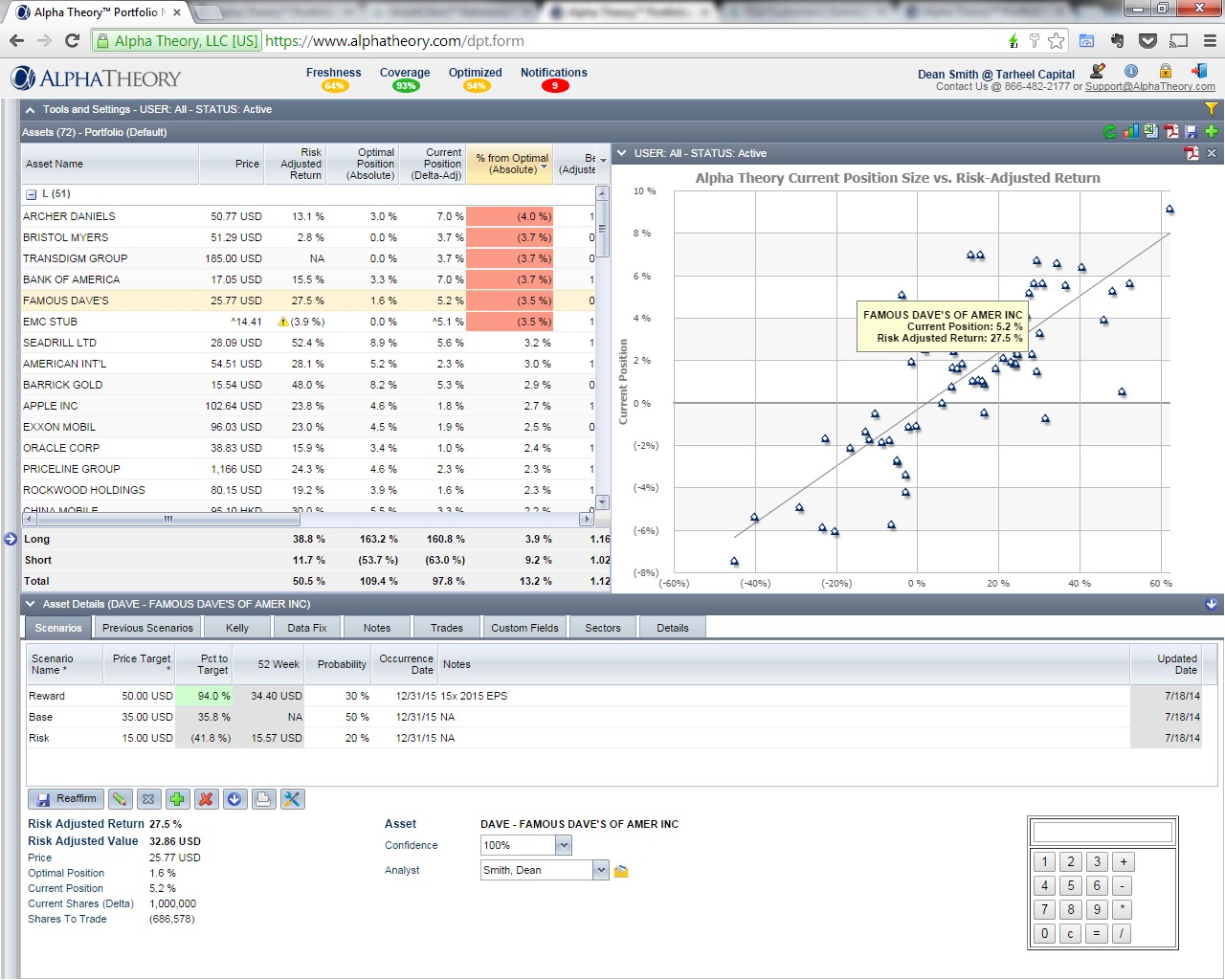 Easily among the most sophisticated HTML5 applications in existence, Alpha Theory™ is a groundbreaking investment fund management tool that combines real-time updates with sophisticated decision analysis. This is no "stock quotes" demo. This is the real thing.